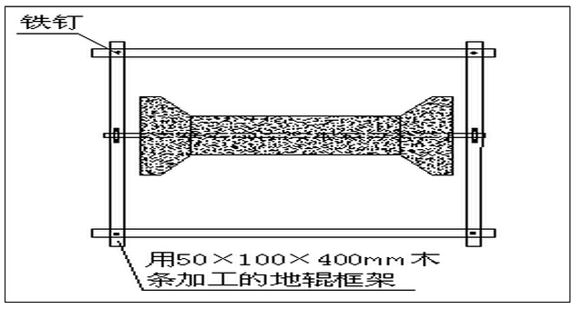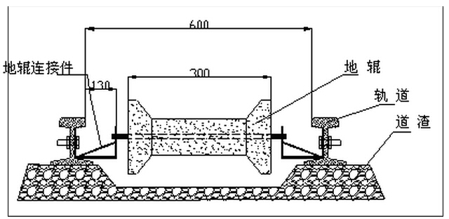 二、整改措施 從改變固定地輥的木質(zhì)框架入手,對(duì)地輥框架進(jìn)行革新,將木質(zhì)框架改為不易腐蝕、穩(wěn)定性強(qiáng)的3mm厚、60mm寬的鋼板??紤]到木質(zhì)框架固定在道木上的不穩(wěn)定性,將鋼板加工的地輥框 架固定在軌道上。綜合以上因素,技術(shù)革新后的地輥框架為型,地輥框架兩臂上各打一個(gè)孔,一端固定地輥,另一端用螺絲與軌道固定在一起(見(jiàn)附圖)