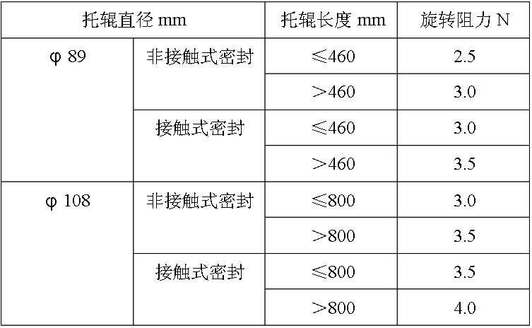 5.跌落后的托輥其旋轉阻力值不得大于表1中規定數值的1.5倍。